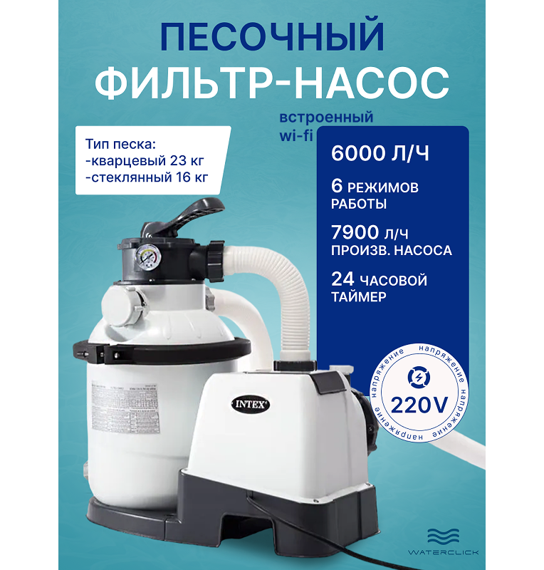 Песочный фильтр-насос Intex 26656 "SX2100 Pluswith"со встроенным WI-FI, 7900 л/ч