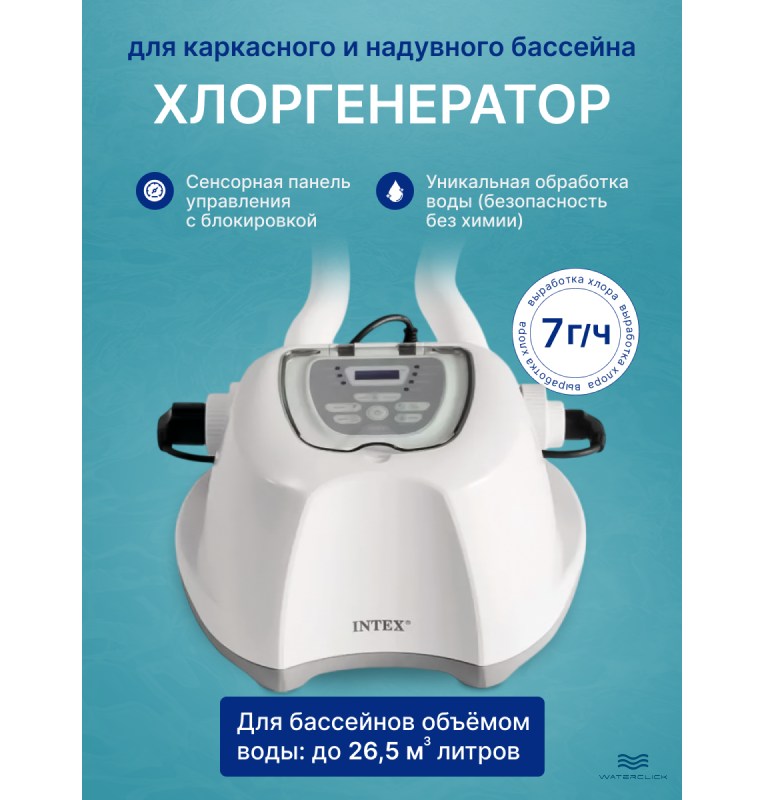 Хлоргенератор для бассейнов Intex 26688 QS700 plus , 7 гр/ч, для бассейна до 26,5м3, выработка хлора до 7 гр/ч, с таймером