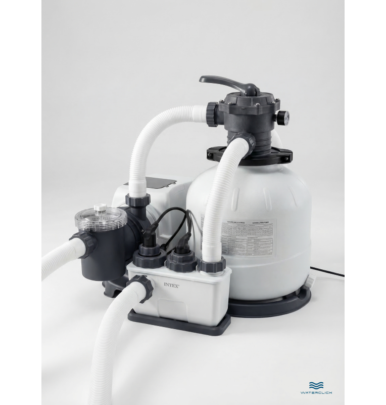 Песочный фильтр-насос + хлоргенератор Intex Krystal Clear 26680 — профессиональная система 2 в 1 для крупных домашних бассейнов или коммерческих объектов. Обеспечивает непрерывную фильтрацию (до 10 000 л/ч) и современную автоматическую дезинфекцию с помощью безопасной соли.