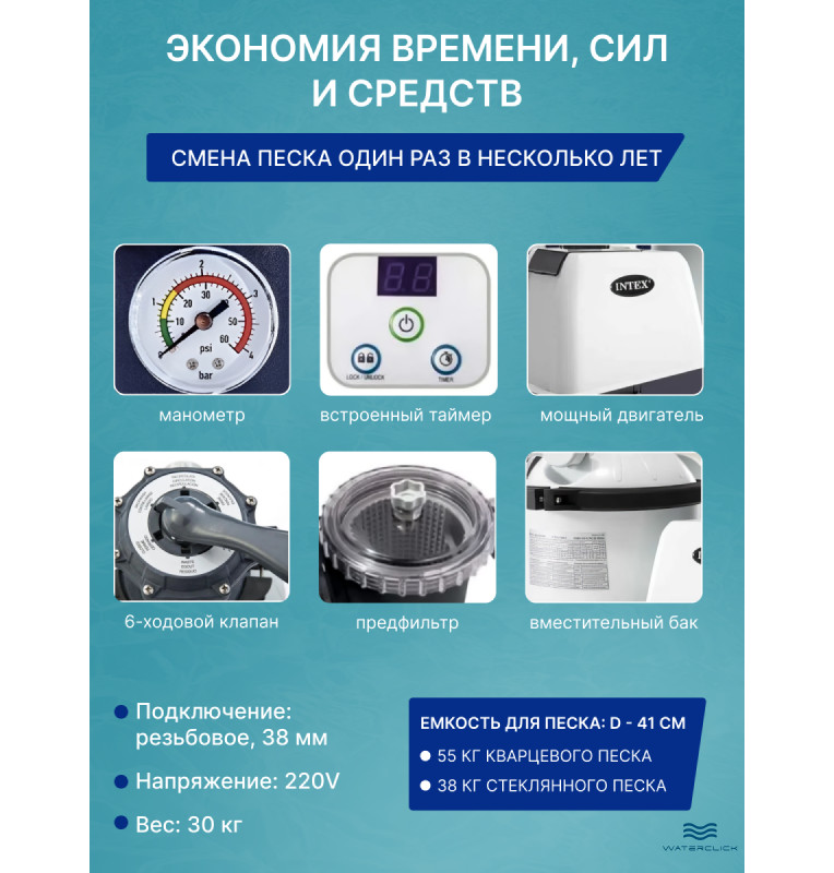 - Оригинальный Intex: гарантия, поддержка, сертифицированная комплектация, инструкция на русском.