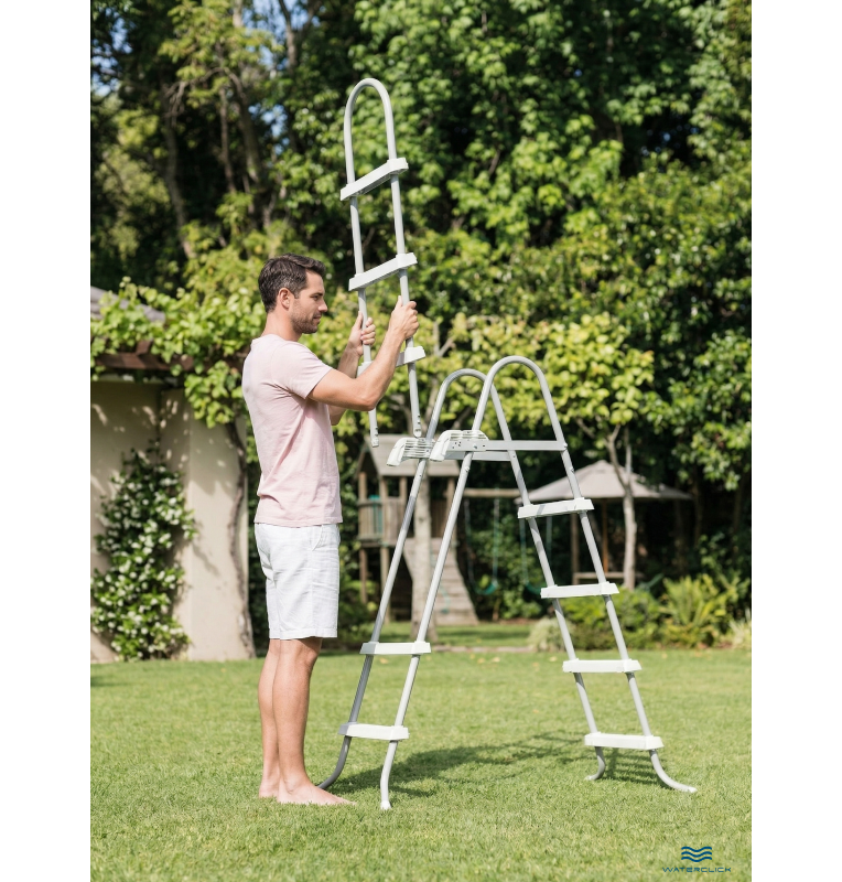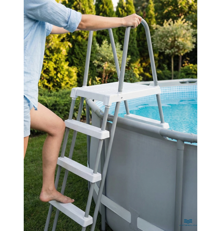 Лестница Intex 28076 — это оригинальное решение для комфортного и безопасного входа и выхода из любого каркасного или надувного бассейна высотой до 122 см. Эта модель оснащена широкой устойчивой площадкой и эксклюзивной системой съемных ступеней: за считанные секунды можно убрать внешние ступени, защищая детей от случайного доступа к воде, когда бассейн не используется. Конструкция рассчитана на высокие нагрузки, устойчива к воде и солнцу — лестница сохраняет форму, не скользит и подходит для интенсивного летнего использования.