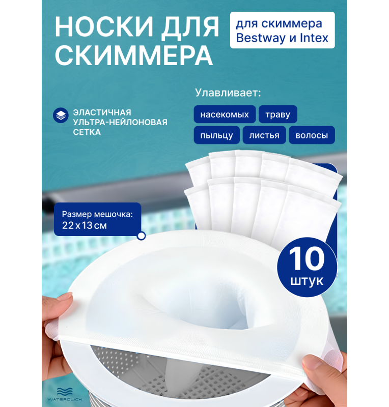 Мешки для скиммера бассейна Bestway и Intex — быстрый способ продлить срок службы основного фильтра, сократить количество крупных загрязнений и облегчить уход за водой. Универсальный размер подходит для большинства популярных моделей бассейнов и скиммеров, мешки многоразовые, легко надеваются и снимаются, выдерживают частые стирки.