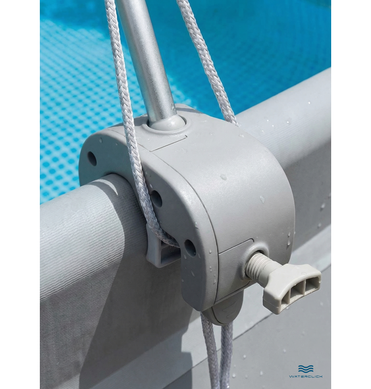 2. Плотно закрепите навес регулируемыми крепежами на бортах бассейна нужной длины и формы.