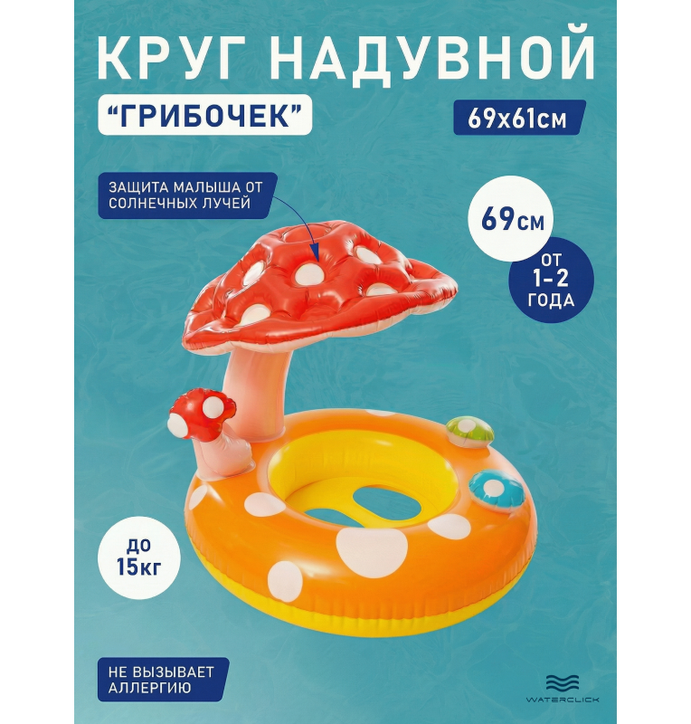 Круг надувной для плавания с трусиками Intex 56574 "Грибочек" — комфорт и безопасность на воде для малышей