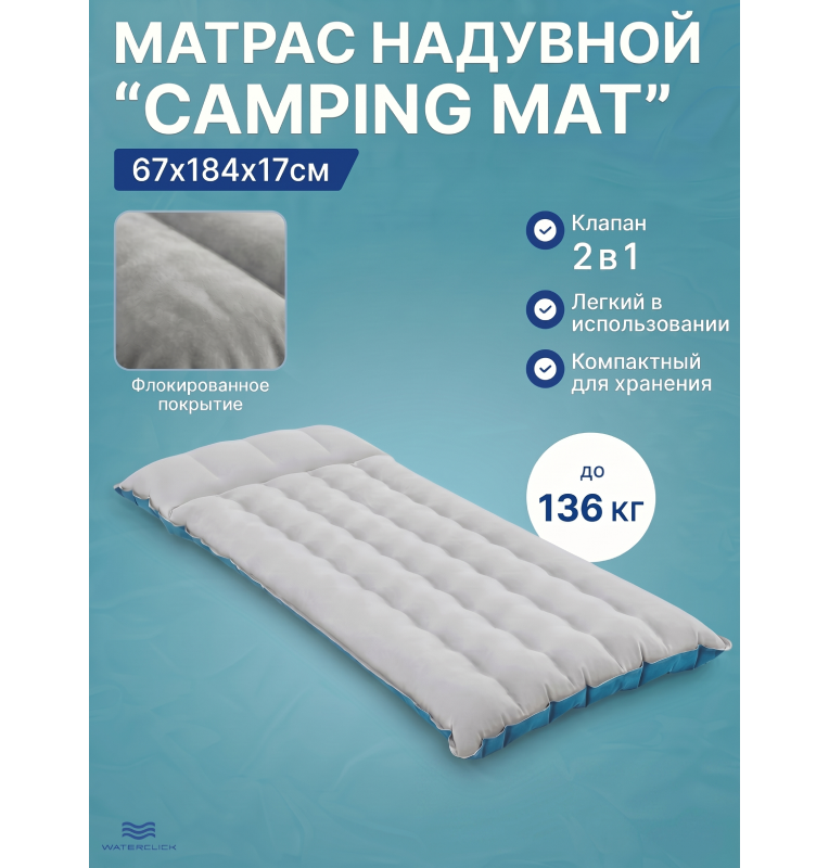 Лёгкий, компактный и невероятно удобный матрас Intex 67997 Camping Mat создан специально для любителей активного отдыха, походов, кемпинга и путешествий. Размеры (67×184×17 см) позволяют использовать его даже в небольшой палатке или на пикнике. В сложенном виде практически не занимает места в рюкзаке! Быстро надувается с помощью насоса, подходит для сна одного взрослого или двух детей.