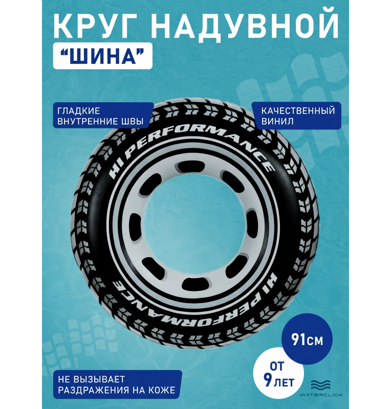 Надувной круг «Шина» INTEX 59252 с крупным диаметром 91 см — идеальный выбор для подростков (от 9 лет) и взрослых, которые хотят выглядеть стильно и чувствовать себя комфортно на воде. Реалистичный дизайн в виде автомобильной покрышки выделяет этот круг среди других: отлично подходит для бассейна, моря, речки, пикников у воды и даже весёлых фотосессий.