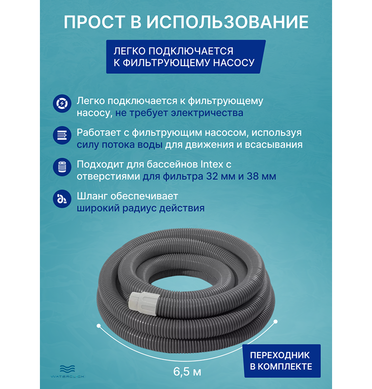 - Шланг 6,5 м — подходит для средних и больших бассейнов