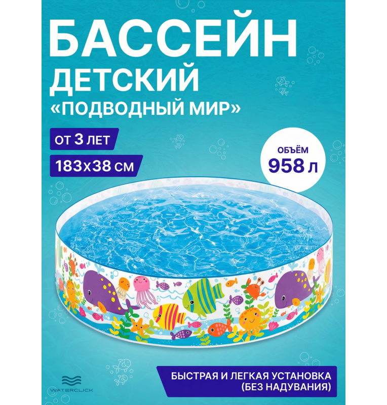 Бассейн каркасный детский "Подводный Мир", 183х38см, от 3 лет,объём 958л, Intex 56452