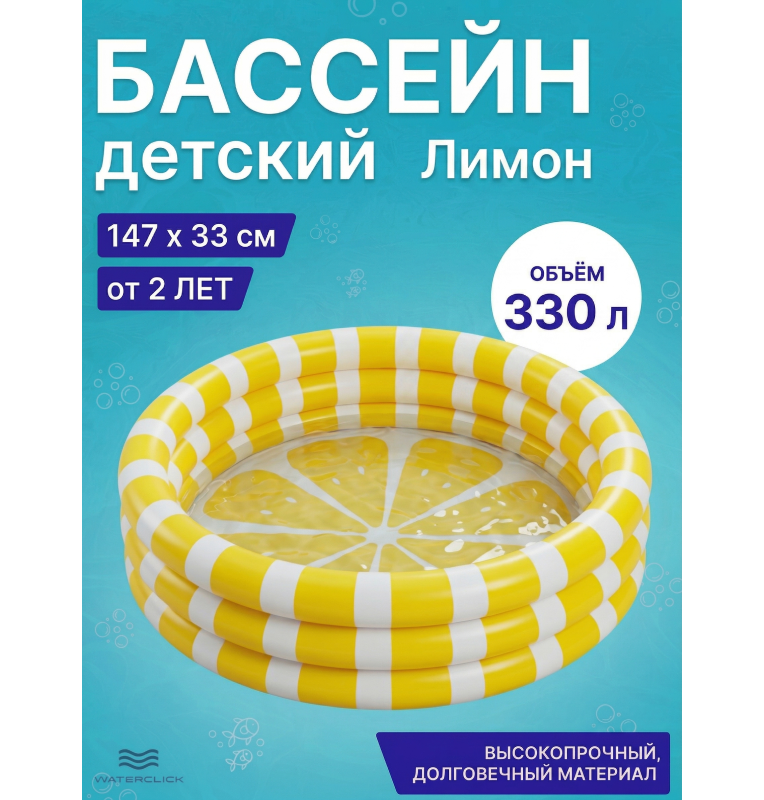 Бассейн надувной детский "Лимон", 147х33см, от 2 лет, 330л, Intex 58432