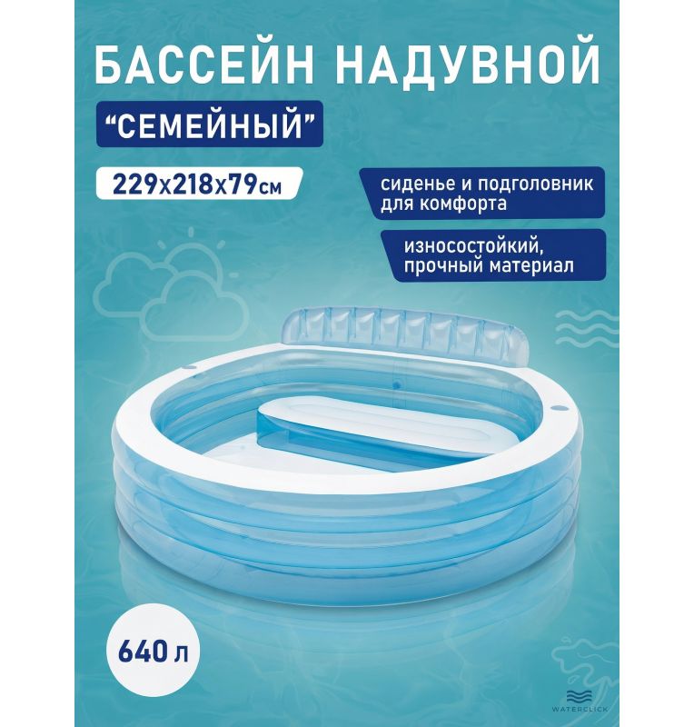 Бассейн надувной семейный с сиденьем и подголовником, 229х218х79см, от 6 лет, Intex 57190