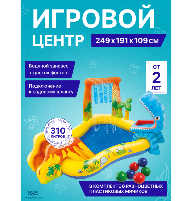 Детский игровой бассейн (центр) Intex 57444 "Динозавр", 249x191x109 см, 310 л, от 2 лет