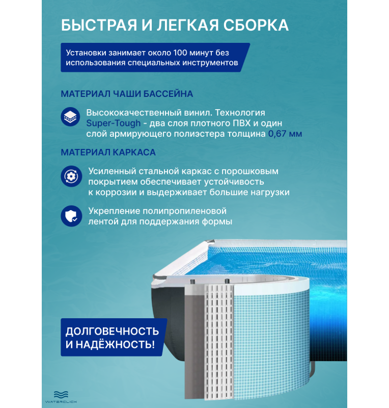 - Устанавливайте бассейн только на ровную, плотную поверхность, обязательно используйте подстилку.