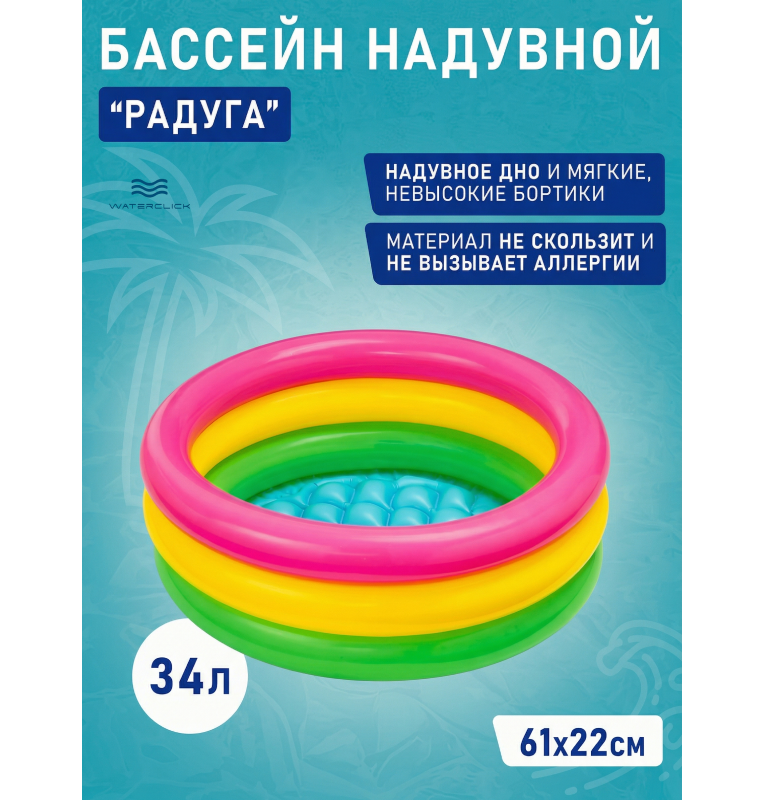 Надувной бассейн детский "Радуга", 61х22см, 34 л, от 1 до 3 лет, Intex 57107