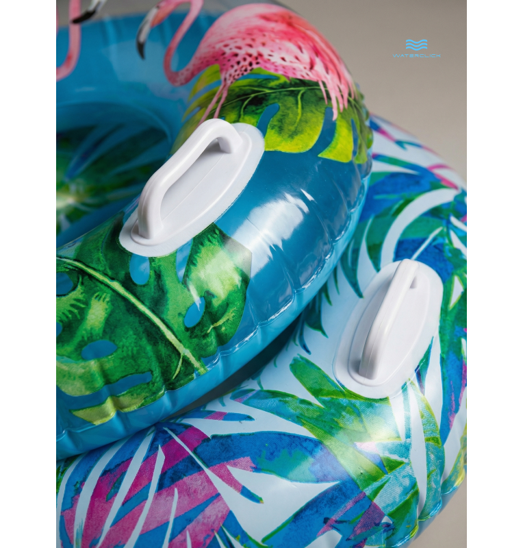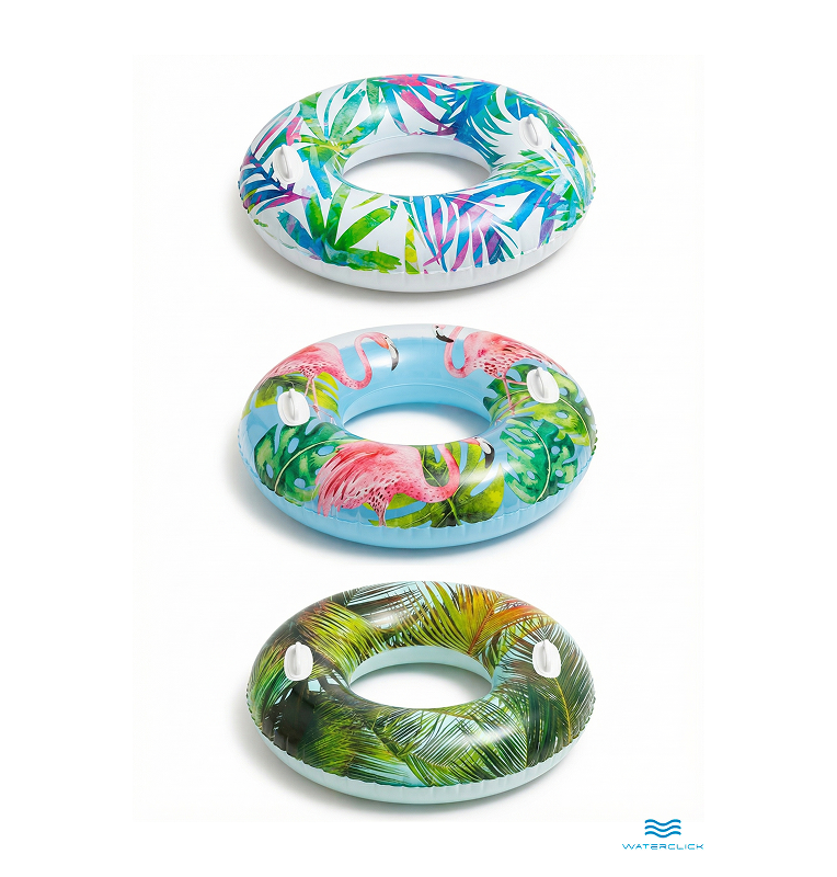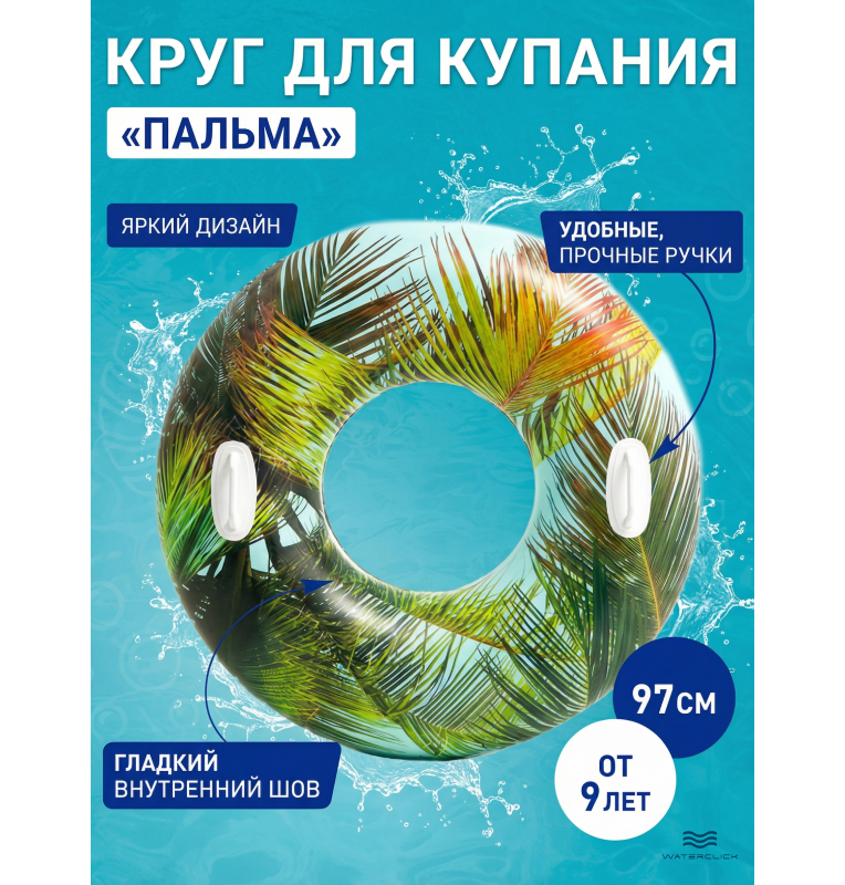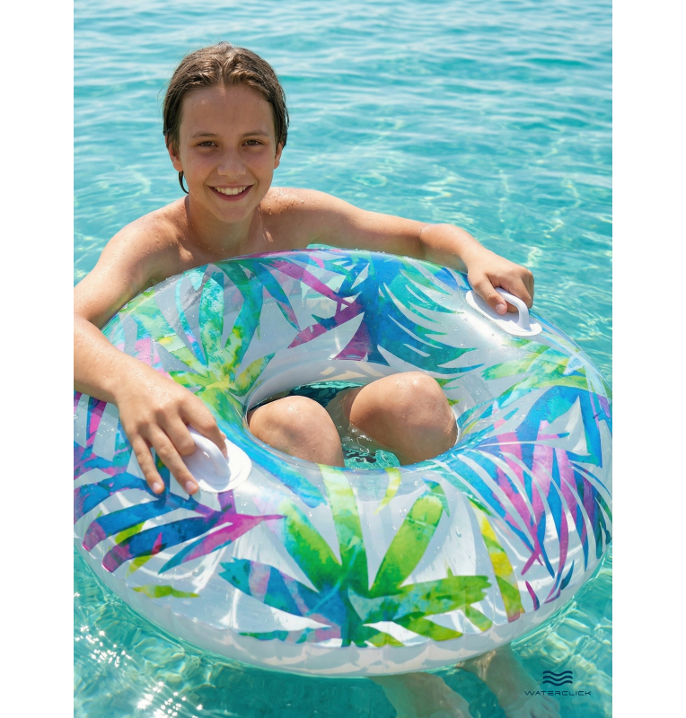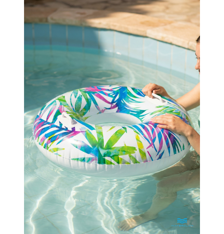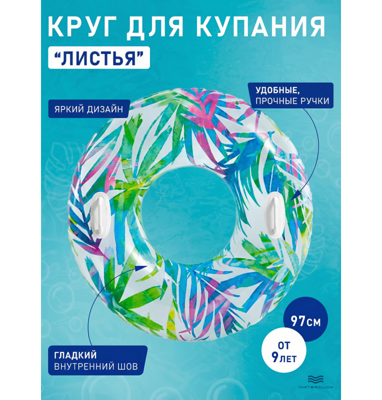 Этот стильный надувной круг диаметром 97 см станет любимым аксессуаром для плавания как для ребёнка, так и для взрослого. Эргономичная форма и две прочные ручки обеспечивают удобный захват и дополнительную безопасность во время купания в бассейне или природном водоёме. Прочный винил толщиной 0,25 мм устойчив к повреждениям, не боится солнца, соли и морской воды. Яркие узоры делают круг заметным издалека — отличный выбор для пляжа, дачи или путешествий. Круг легко надувается, занимает минимум места в сдутом состоянии и не требует сложного ухода. Разрешён к использованию с 9 лет, выдерживает нагрузку до 80 кг.