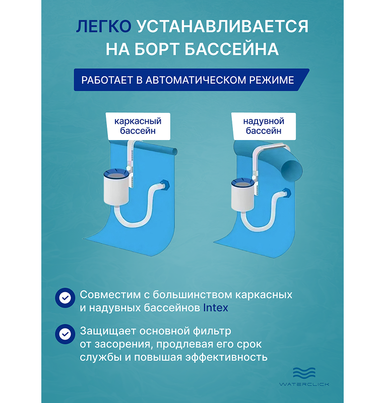 | Совместимость | все каркасные и надувные бассейны с насосами Intex и большинства других брендов |