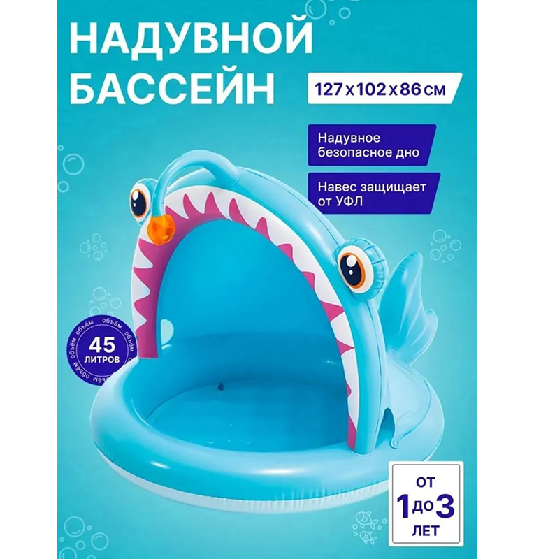 Детский надувной бассейн с навесом "Рыба", 127х102х86см, 45 л, от 1 до 3 лет, Intex 58419