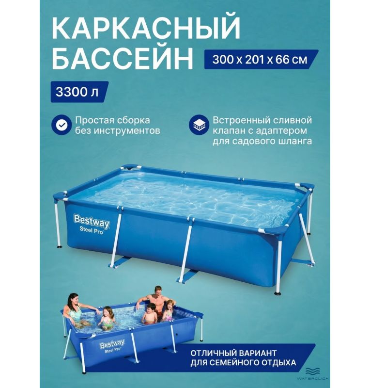 Каркасный бассейн Bestway 56404 (300х201х66 см, 3300 л) — водный отдых для всей семьи на даче или во дворе
