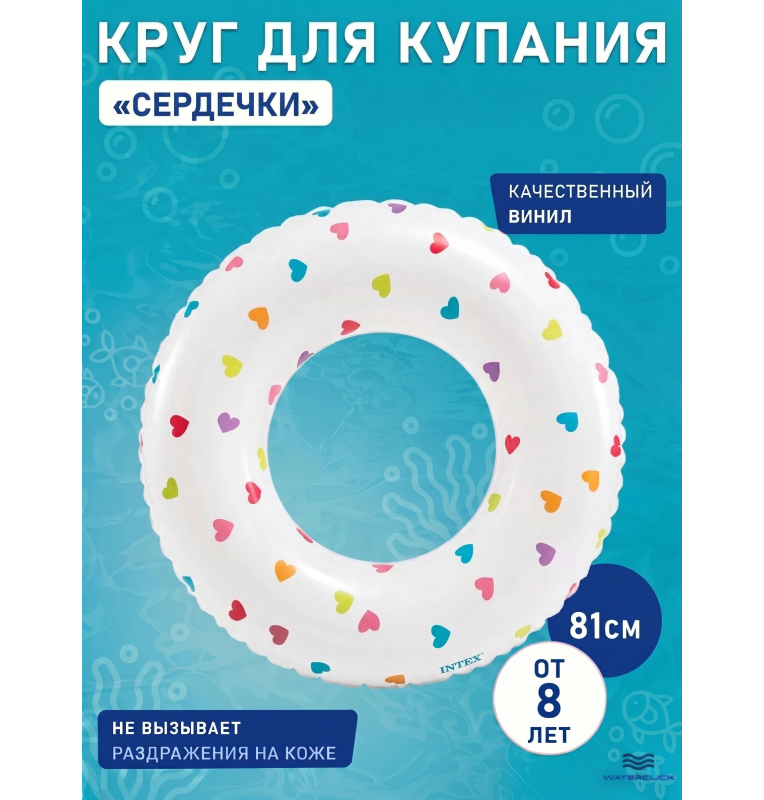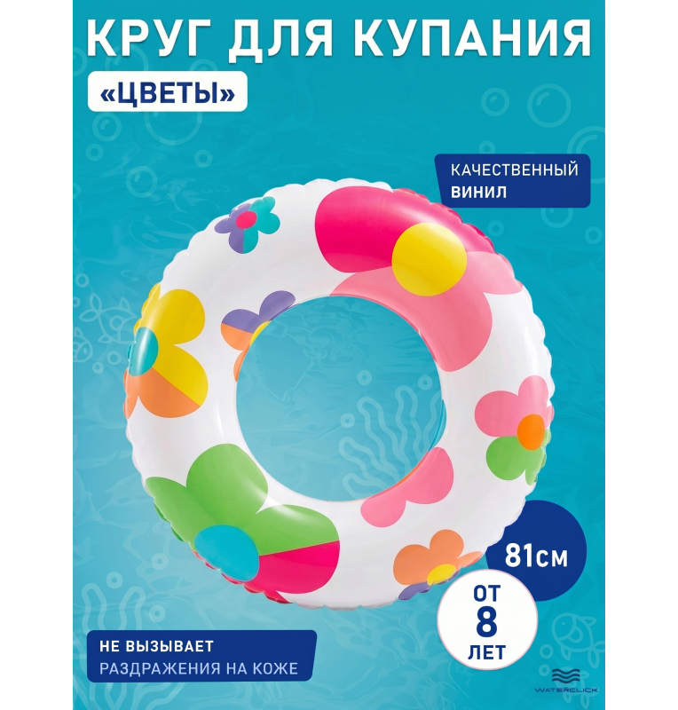 Этот круг от Intex (арт. 59259) выделяется не только прочностью и безопасностью, но и креативным оформлением. Диаметр 81 см обеспечивает удобство для детей и подростков, а фирменная виниловая пленка выдерживает любые развлечения у воды. Берите на море, в бассейн, на дачу — для плавания, игр, фотосессий!