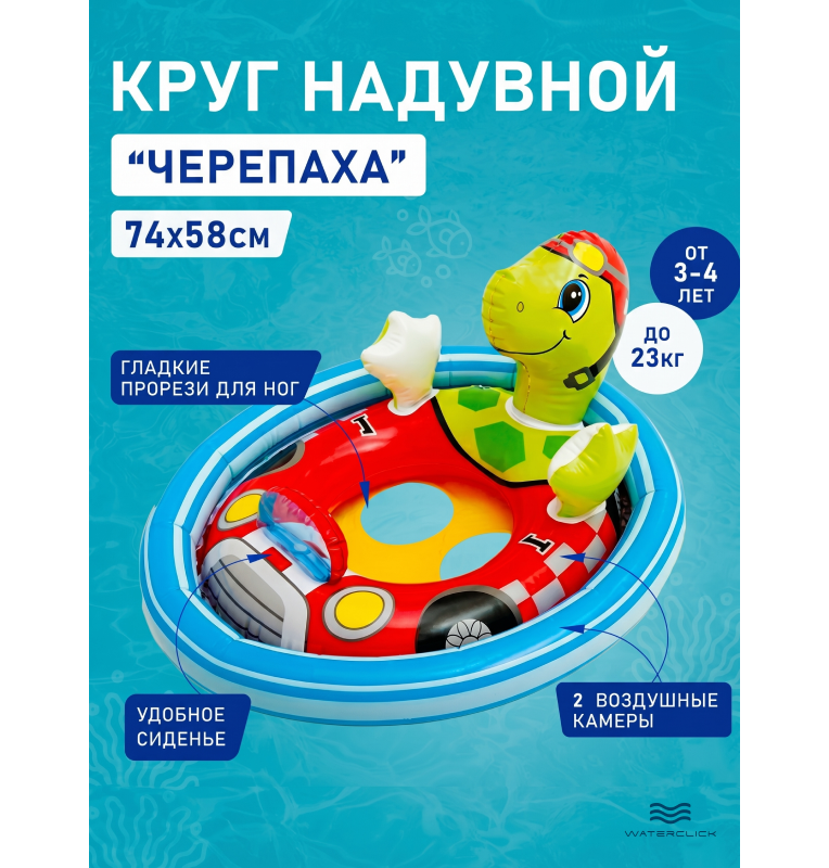 Intex 59570 легко брать на любое водное мероприятие: бассейн, море, речка, озеро, аквапарк, дача — благодаря компактным размерам в сложенном виде круг не займёт много места в сумке или рюкзаке. Использование максимально простое: надуйте круг любым насосом, аккуратно усадите ребёнка — и можно смело учиться плавать, зная, что малыш всегда в безопасности и отлично защищён от риска выскальзывания!