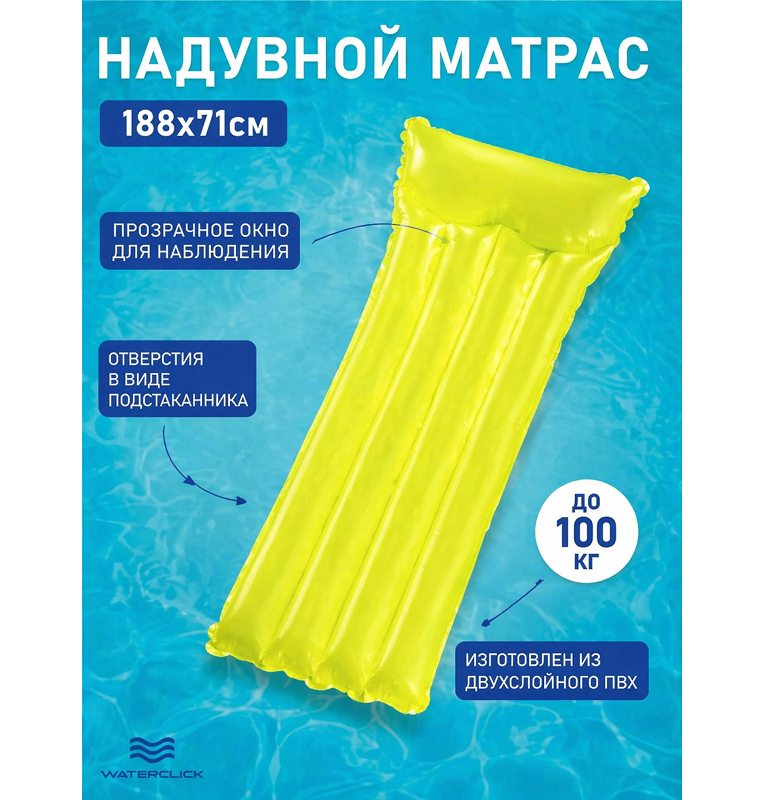 Стильный и прочный надувной матрас Intex 59717 неоновый (183×76 см, до 100 кг) — это классический аксессуар для пляжа, бассейна или дачи. Благодаря ярким цветам, вас всегда легко найти на воде. Матрас выполнен из винила толщиной 0,18 мм, выдерживает взрослого пользователя. Встроенный подголовник обеспечивает дополнительный комфорт.
