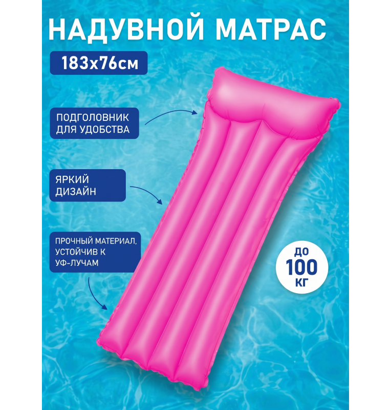 Две отдельные воздушные камеры гарантируют безопасность: даже при проколе одной из них вторая продолжает держать матрас на воде. Компактные размеры и лёгкий вес позволяют брать изделие в поездки и легко хранить после сезона. В комплекте — ремонтная заплата на случай прокола.
