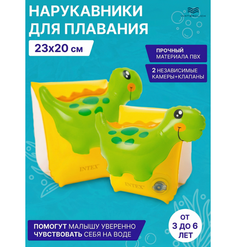 Нарукавники детские надувные "Динозаврики", 23х20см, 3-6 лет, Intex 56664