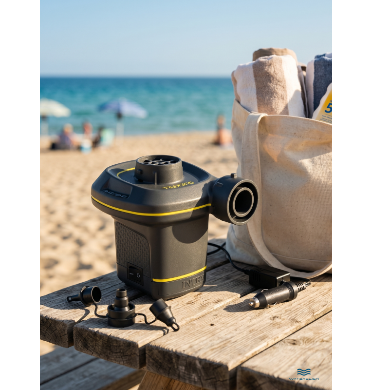 • 3 универсальные насадки — подходят для бассейнов, матрасов, лодок, батутов, игрушек