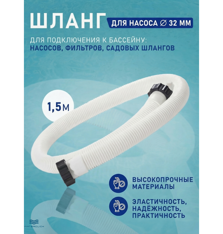 Шланг Intex 29059 — это надёжное решение для подключения фильтрационных насосов, хлораторов, подогревателей или универсальных аксессуаров к вашему бассейну. Благодаря диаметру 32 мм и длине 150 см он идеально подходит для большинства каркасных и надувных бассейнов Intex и других популярных брендов.