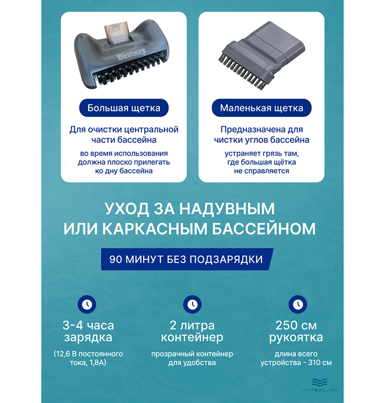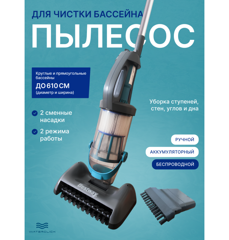 Пылесос для бассейна Bestway 58946 AquaGrip, аккумуляторный, ручной, беспроводной