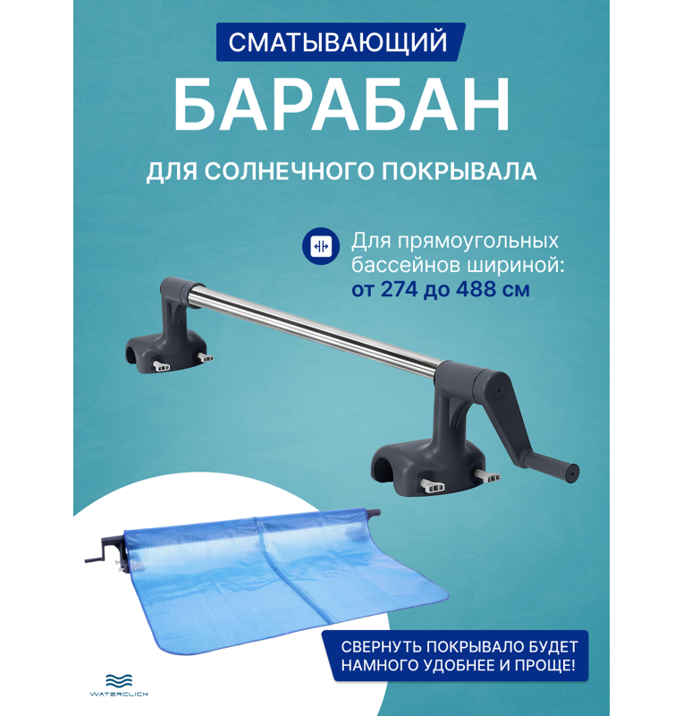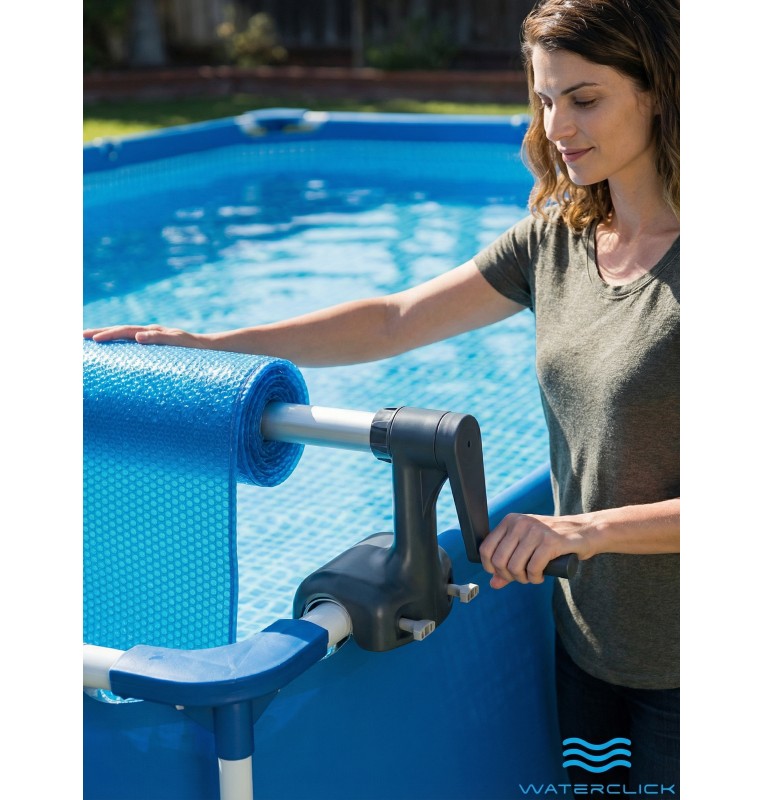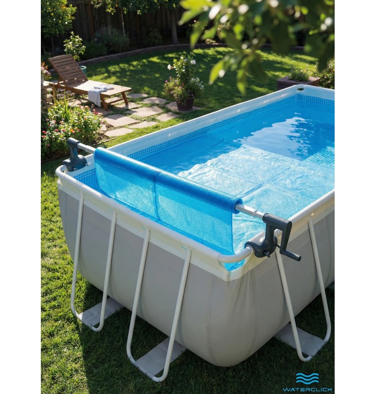 Сматывающее устройство используют с солнечным покрывалом (солярной плёнкой) на прямоугольных каркасных бассейнах. При подборе ориентируйтесь на ширину бассейна: если она выходит за диапазон 274–488 см, роллер может не подойти по габаритам.