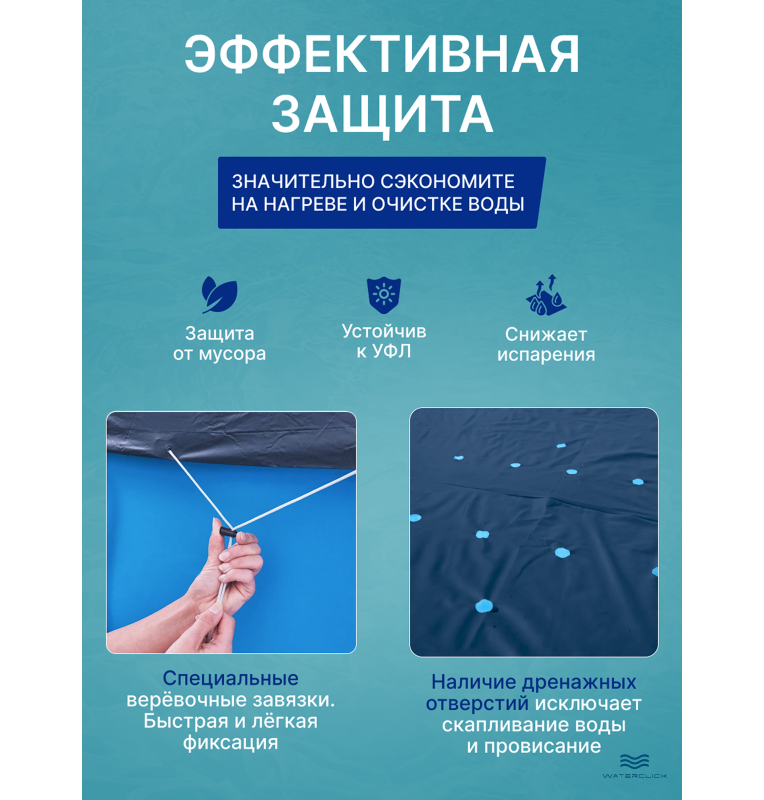 • Снижение испарения — помогает сохранить уровень воды.
